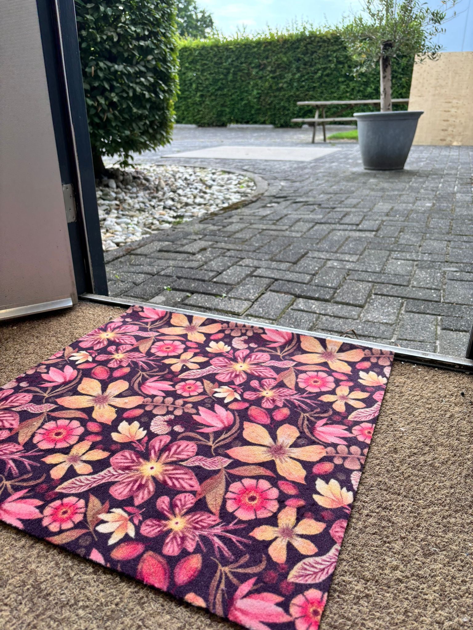 • Verrijk je entree met de stijlvolle Droogloopmat Spiced Petals, speciaal ontworpen om vuil en vocht tegen te houden en je vloer langer mooi te houden. Deze mat wordt volledig op maat gemaakt, zodat hij altijd perfect past in jouw hal, keuken of bij de achterdeur.